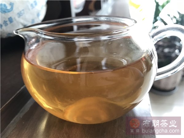 湯色黃而透亮具有明顯的生茶的品質(zhì),蜜香濃郁,杯底留香。唇齒之間先是苦澀卻消失得很快,喉嚨里更多的是溫潤(rùn)?;馗食志?。